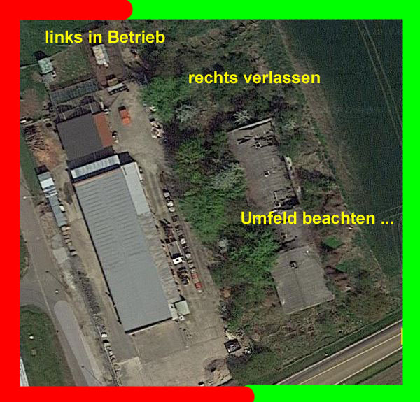 Ein Hallo, an die Neueinsteiger unter Euch. An dieser Stelle möchte ich zwei Fragen beantworten, die Ihr „logischerweise“ stellt. Die 1. : Wie finde ich ein „Lost Place“ bzw. ein verlassenes Objekt? Wenn Ihr noch zu Hause, ein oder mehrere verlassene Objekte suchen möchtet, brauch Ihr nur einen Computer oder Smartphon mit Internetzugang. Es gibt zahlreiche Webseiten, über die ich hier aber keine Ausführungen machen möchte. Dies kann jeder eigenständig in Augenschein nehmen. Die meißten unter Euch möchte aber selber „verlassene Orte“ finden. Diese sollen kaum bekannt sein und dann sind auch besondere Fotos möglich. Dazu könnt Ihr direkt unter Verwendung von Luftbildern im Internet suchen: Ihr startet das Programm: Google Earth ( Installation ist notwendig ) oder im Browser: Google Maps im Satelliten Modus. Mit diesen Programmen „im Satelliten Modus – Luftbilder“ könnt Ihr auf die Suche gehen. Bitte denkt bei der Suche über das Internet, das sich die Objekte in der Zwischenzeit verändert haben, wieder genutzt werden oder abtgerissen wurden. Die Luftbilder können nicht aktuell sein, sondern sind teilweise über 10 Jahre alt! Ein Abriss erfolgt oft innerhalb von ein paar Tagen oder Wochen. Was gestern noch da war, kann morgen schon weg sein … „leider“. Solltet Ihr „vor Ort“ am Live Objekt feststellen, das es kein „Verlassenes Objekt“ mehr ist, so solltet Ihr die Commiunity umgehend informieren, damit dieses Objekt schnellstens aus den Datenbanken gelöscht werden kann. Als zweites könnt Ihr über das Textsuchfeld ( links oben ) suchen. Gebt einfach Begriffe wie: „Lost Place“, „Verlassen“ oder „Ruine“ und „in der Nähe suchen“ ein. Als drittes könnt ihr das Luftbild analysieren und nach „verlassenen Objekten“ suchen. Hierzu habe ich einige Luftbilder zur Orientierung: |